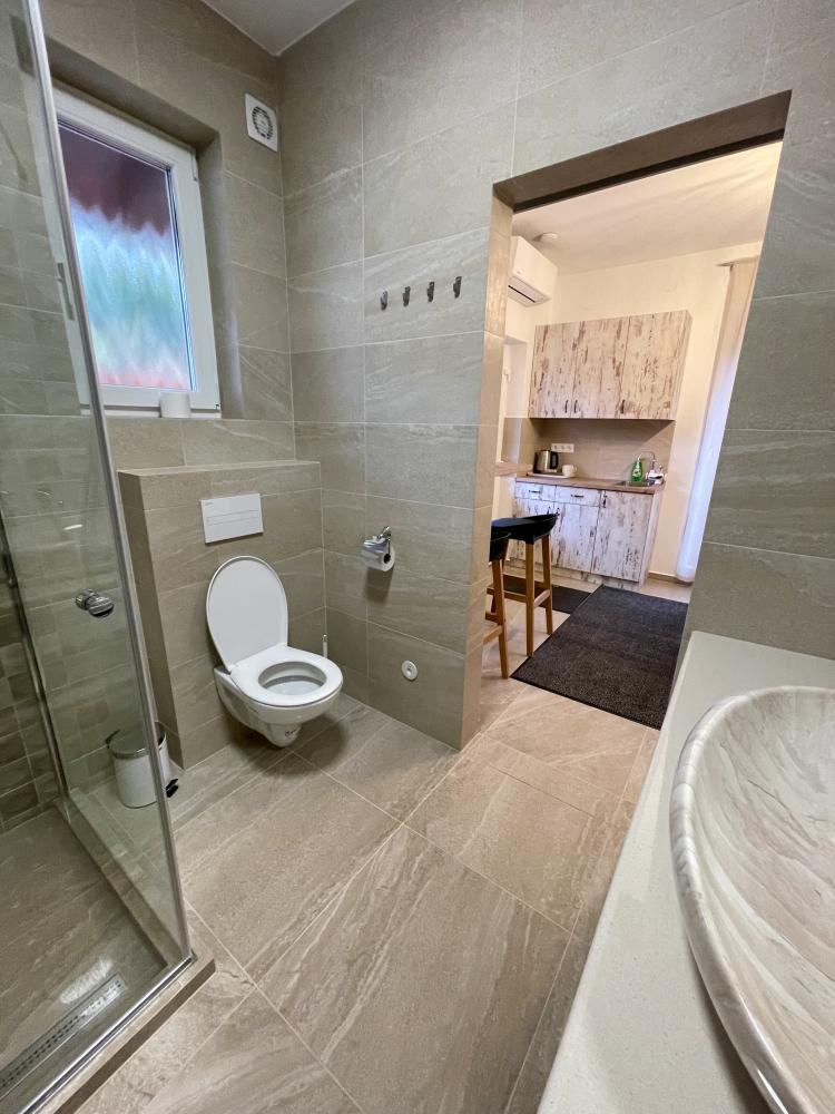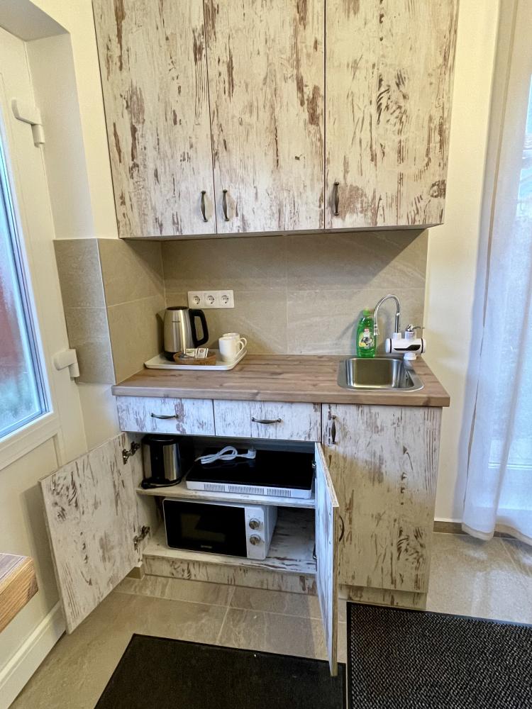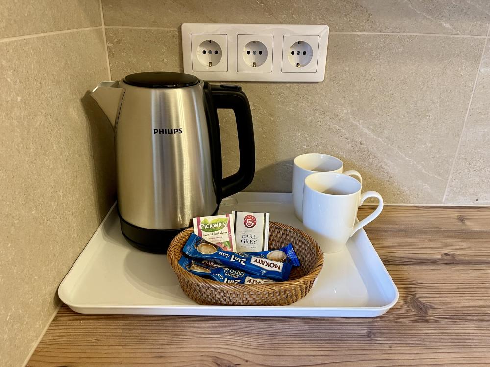 A külön bejáratú, légkondicionált apartmanban az ételeket az elektromos főzőlappal, és konyhai eszközökkel felszerelt konyhában lehet elkészíteni. Az apartman, hangszigetelt falakkal és síkképernyős kábel-TV-vel rendelkezik.